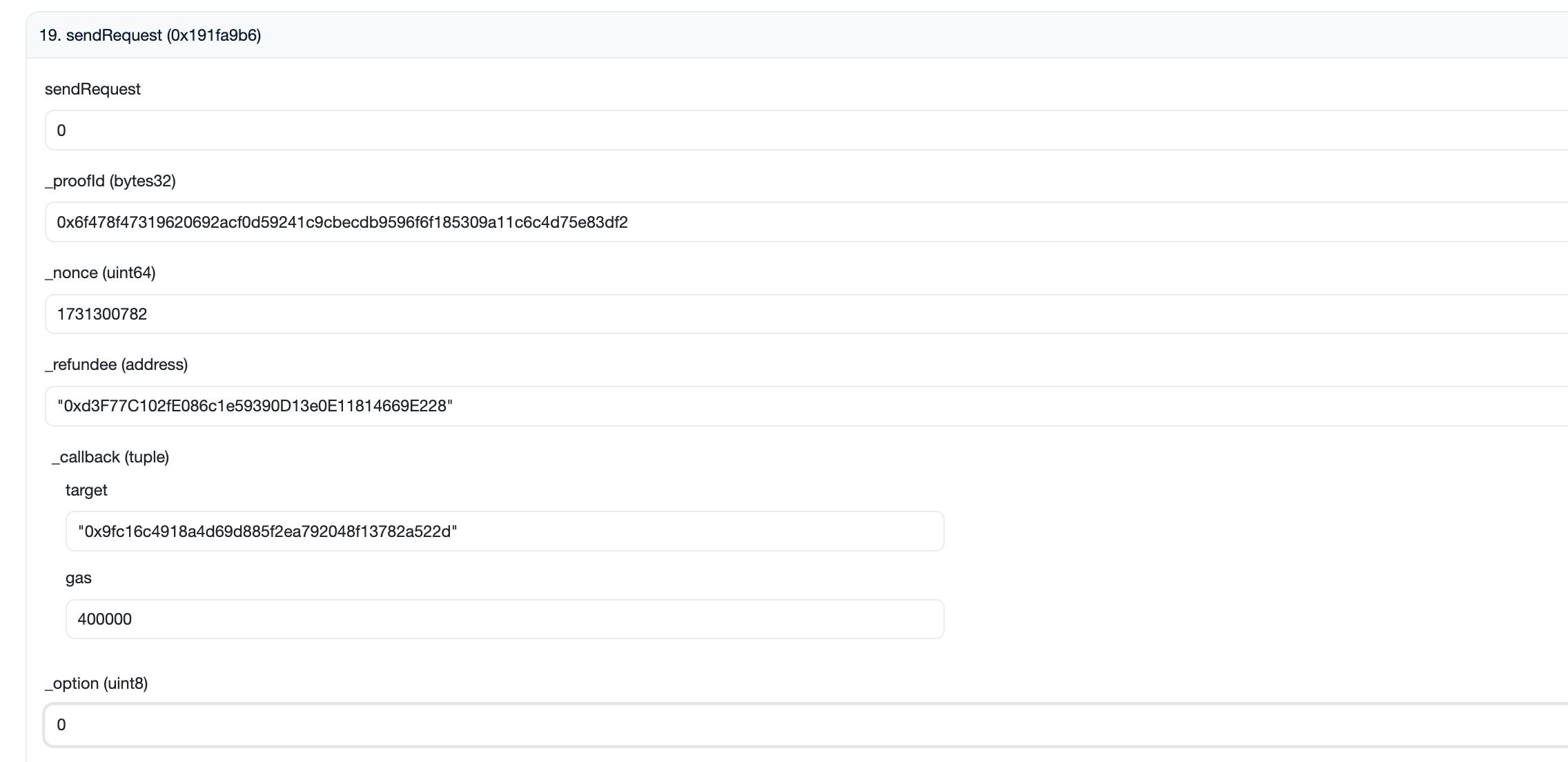 | BrevisRequest | 0x1CD3530F69a85B826b952033365adC4A008F3654 |